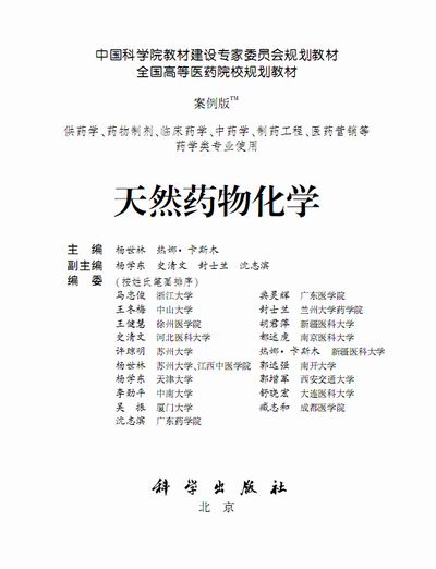 此书为中国科学院教材建设专家委员会规划教材、全国高等医药院校规划教材,供药学、药物制剂、临床药学、中药学、制药工程、医药营销等药学类专业本科生使用。主编为杨世林、热娜卡斯木,副主编为杨学东、史清文、封志兰、沈志滨。