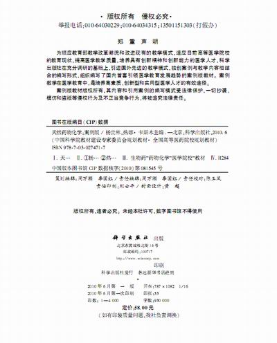 由科学出版社出版、我室史清文教授为副主编的本科教材《天然药物化学(案例版)》第1版于2010年6月正式出版。