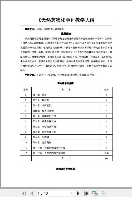 2017版:全日制本科天然药物化学教学大纲(本室编)