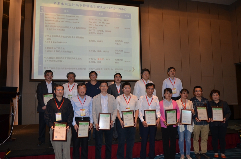 在近日召开的《天津中草药杂志社编委会暨刘昌孝院士从业50周年学术研讨会》上,我室在《中草药》杂志发表的论文《天然药物化学研究与新药开发(2010, 41(10): 1583-1589)》被认定为近五年(2010-2014)中草药杂志高下载论文,以CNKI下载数据认定为准。这是中草药杂志社首次搞此项活动。